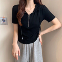 【百搭拉鏈帽衫】特殊設計層次感,不會整件超呆板~拉鍊拉下鎖骨配項鍊,女人味UPUP_棉質舒適.延展性高.必須擁有