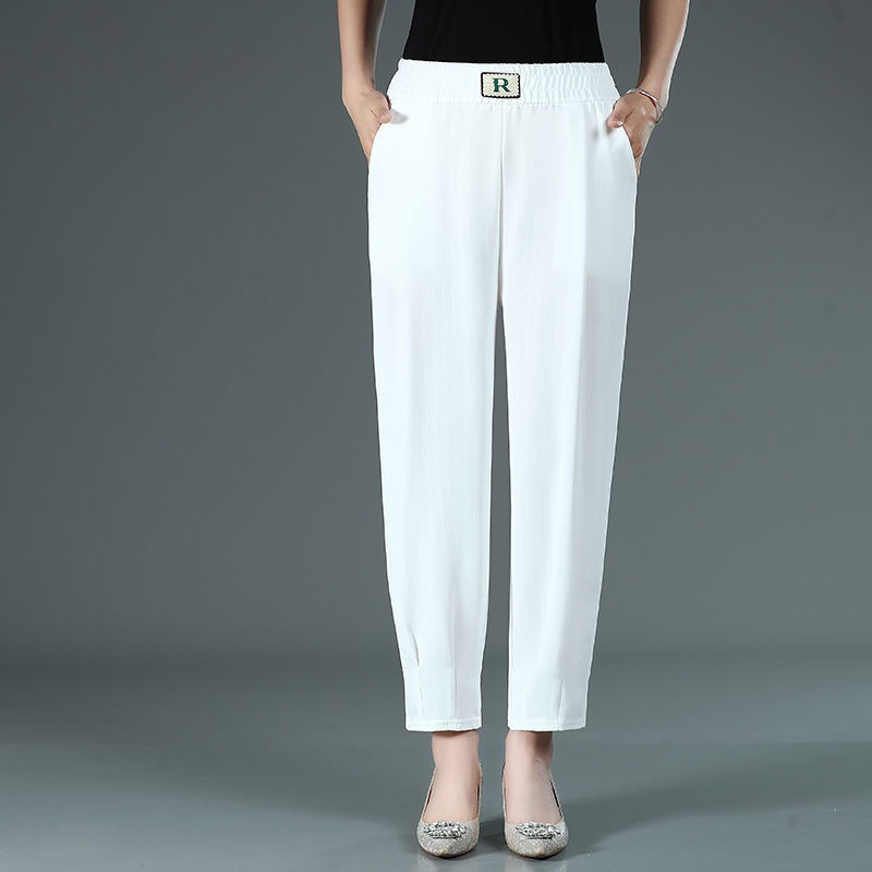 2025 春夏薄款休閒長褲 冰絲面料透氣速干絕絕子 鬆緊腰 涼爽透氣小腳褲顯瘦 百搭九分蘿蔔褲 寬松洋氣美