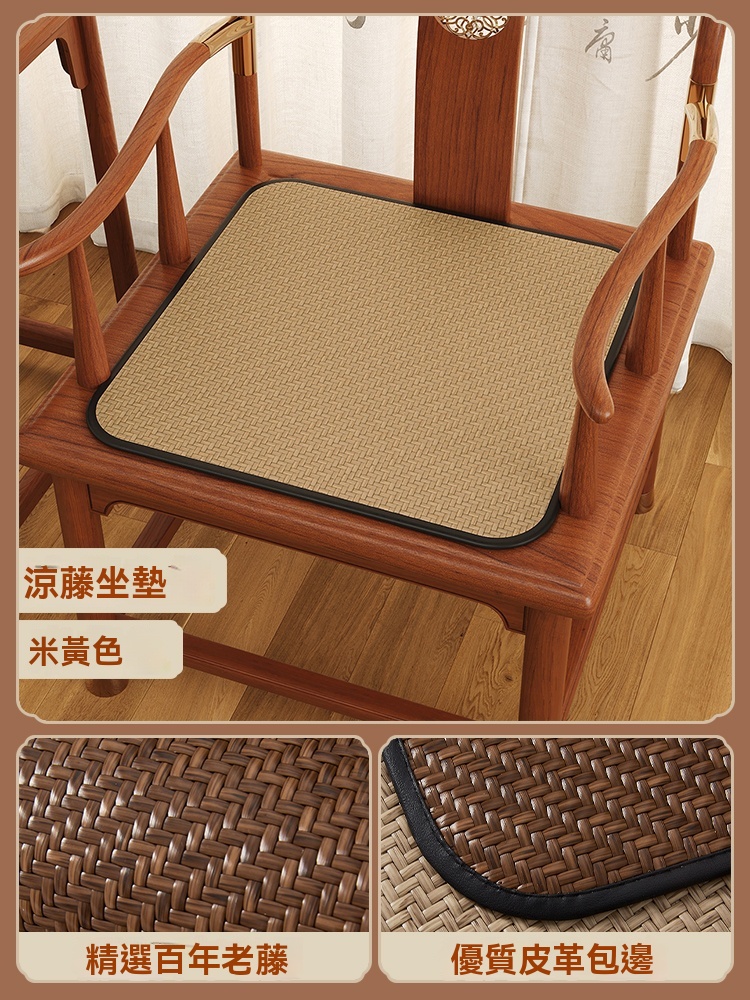 天然藤原材,透氣不悶汗! 夏日久坐清爽如風,匠人手編工藝,涼感直透肌膚。